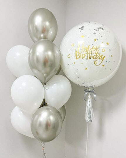 Надписи на стеклянных шарах держатся долго и не теряют формы, но из-за большего веса баблс и конфетти они летают меньше по времени, чем обычные латексные шары этого же размера.