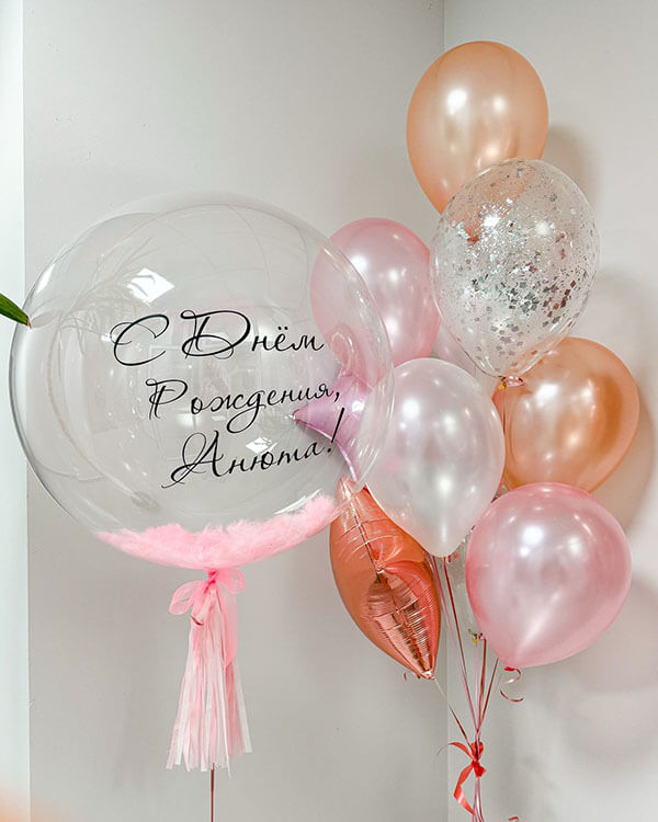 Шар с перьями и индивидуальной надписью